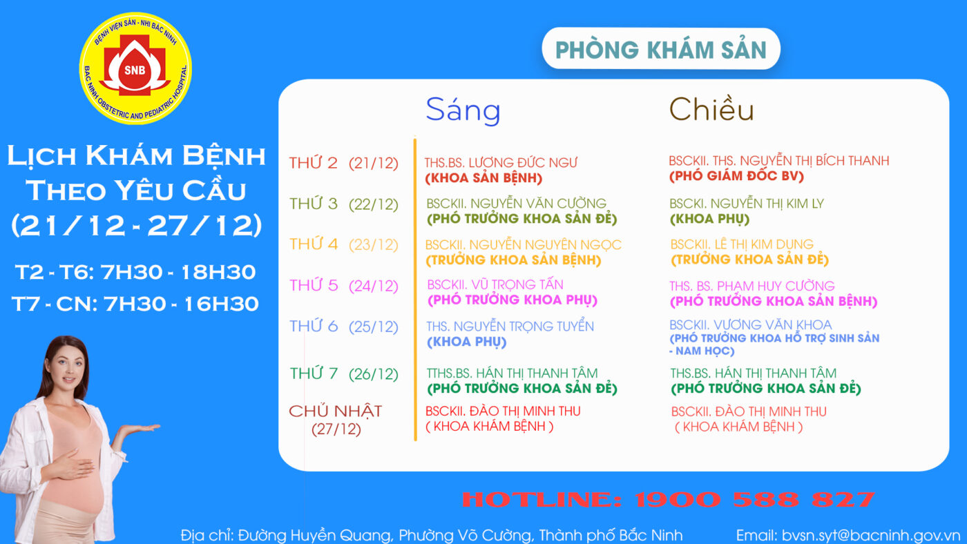 LỊCH KHÁM THEO YÊU CẦU TỪ 23/11 – 29/11 PHÒNG KHÁM SẢN PHÒNG KHÁM NHI