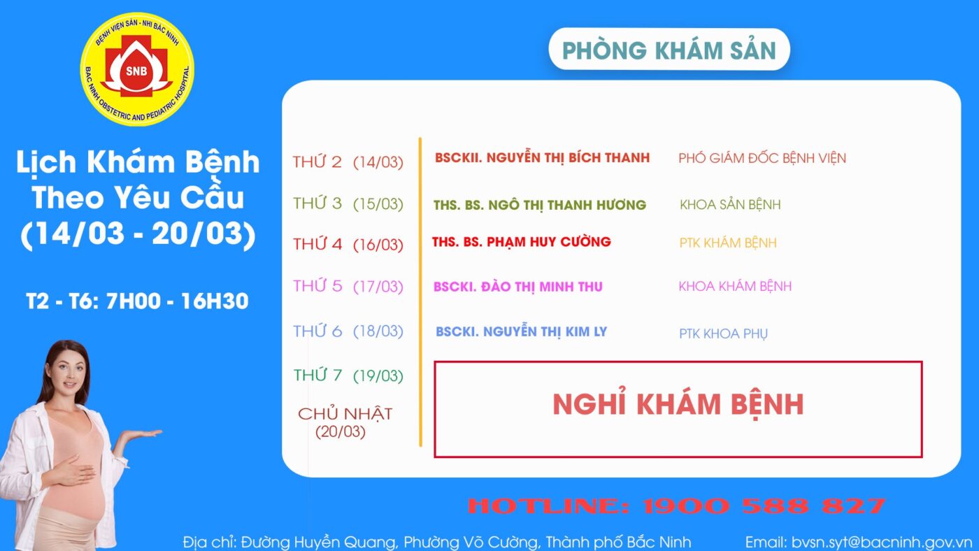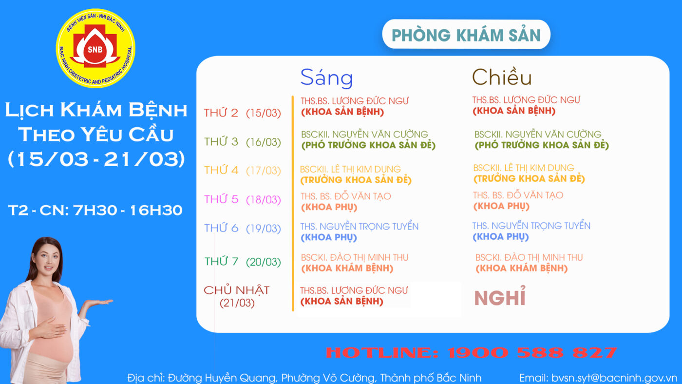 LỊCH KHÁM THEO YÊU CẦU TỪ 16/11 – 22/11 PHÒNG KHÁM SẢN PHÒNG KHÁM NHI