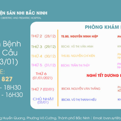 LỊCH KHÁM THEO YÊU CẦU TỪ 28/12/2020 ĐẾN 03/01/2021