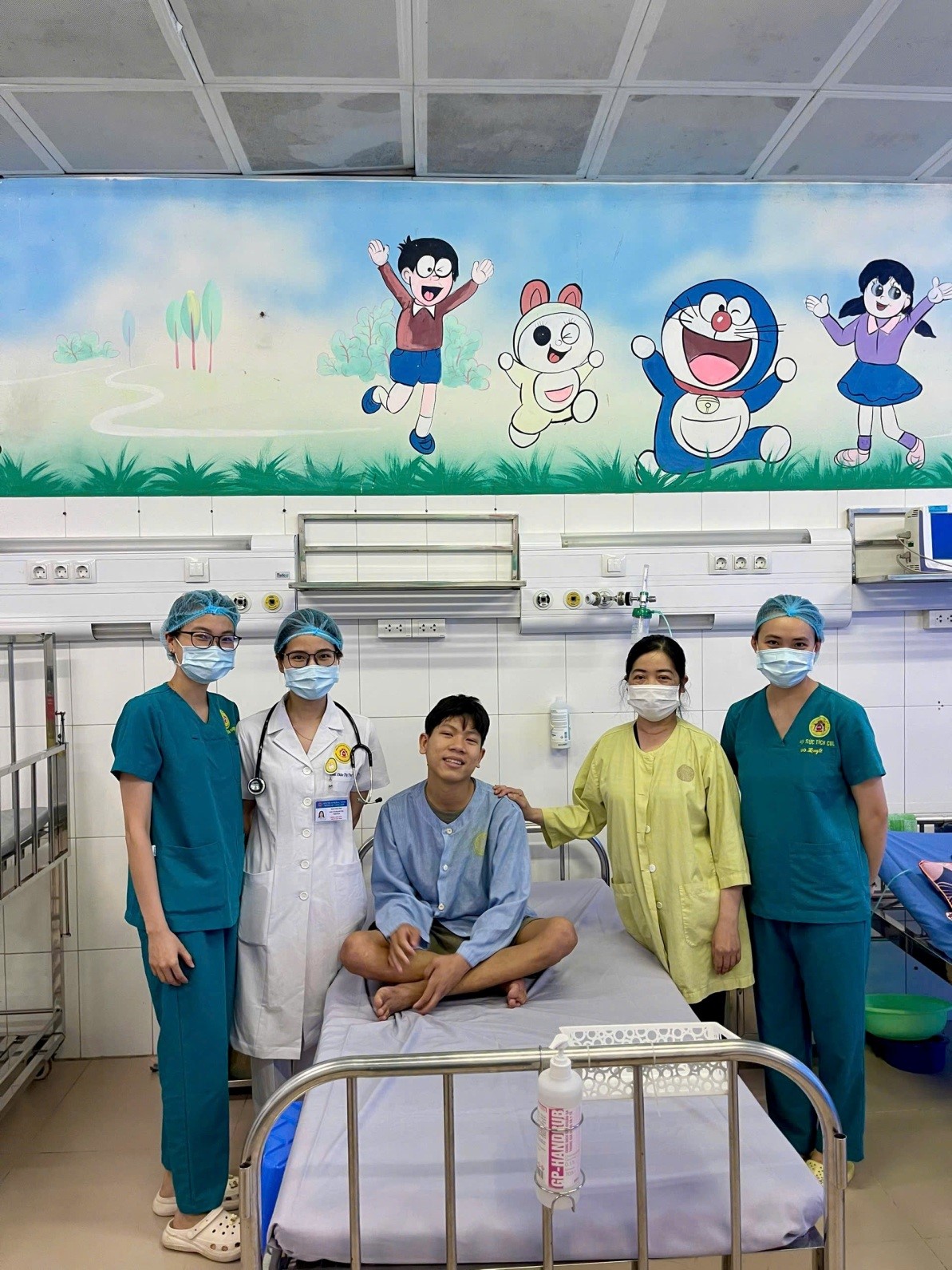 Hình ảnh : Bệnh nhân cùng nhân viên y tế khi xuất viện