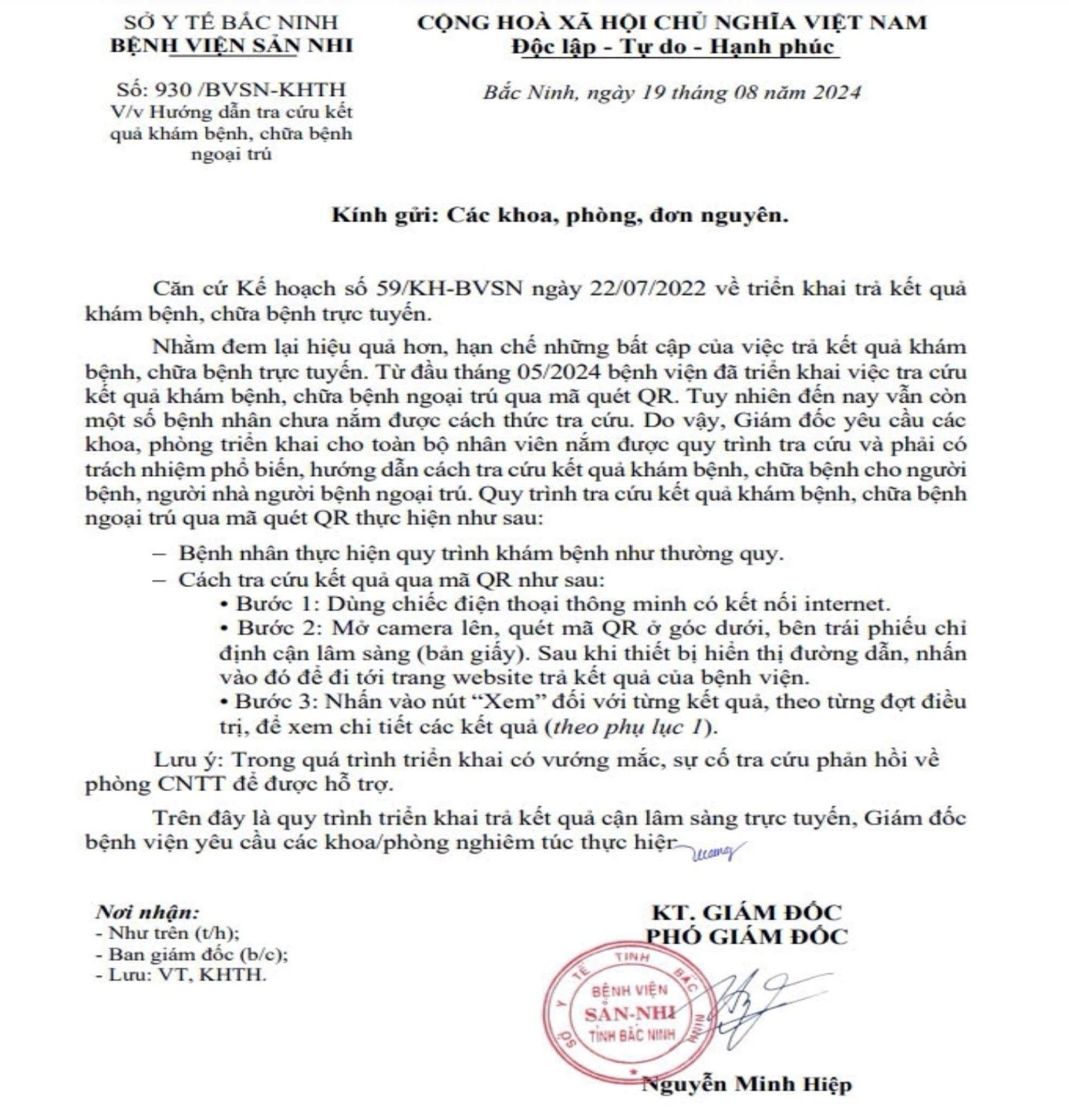 Công văn “Hướng dẫn thực hiện tra cứu kết quả khám bệnh, chữa bệnh ngoại trú”
