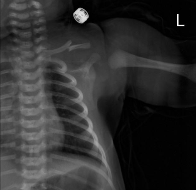 Lưu ý: Ở nhiều trường hợp, trẻ không biểu hiện đau rõ ràng do sơ sinh không nhạy cảm với cảm giác đau như người lớn. Gãy xương đòn thường được phát hiện tình cờ khi trẻ được chụp X-quang ngực thẳng vì một lý do khác.