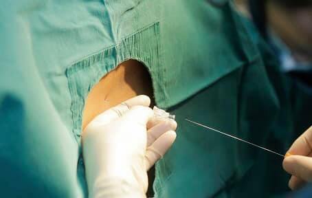 Nhân viên y tế đang thực hiện quy trình gây tê ngoài màng cứng cho sản phụ