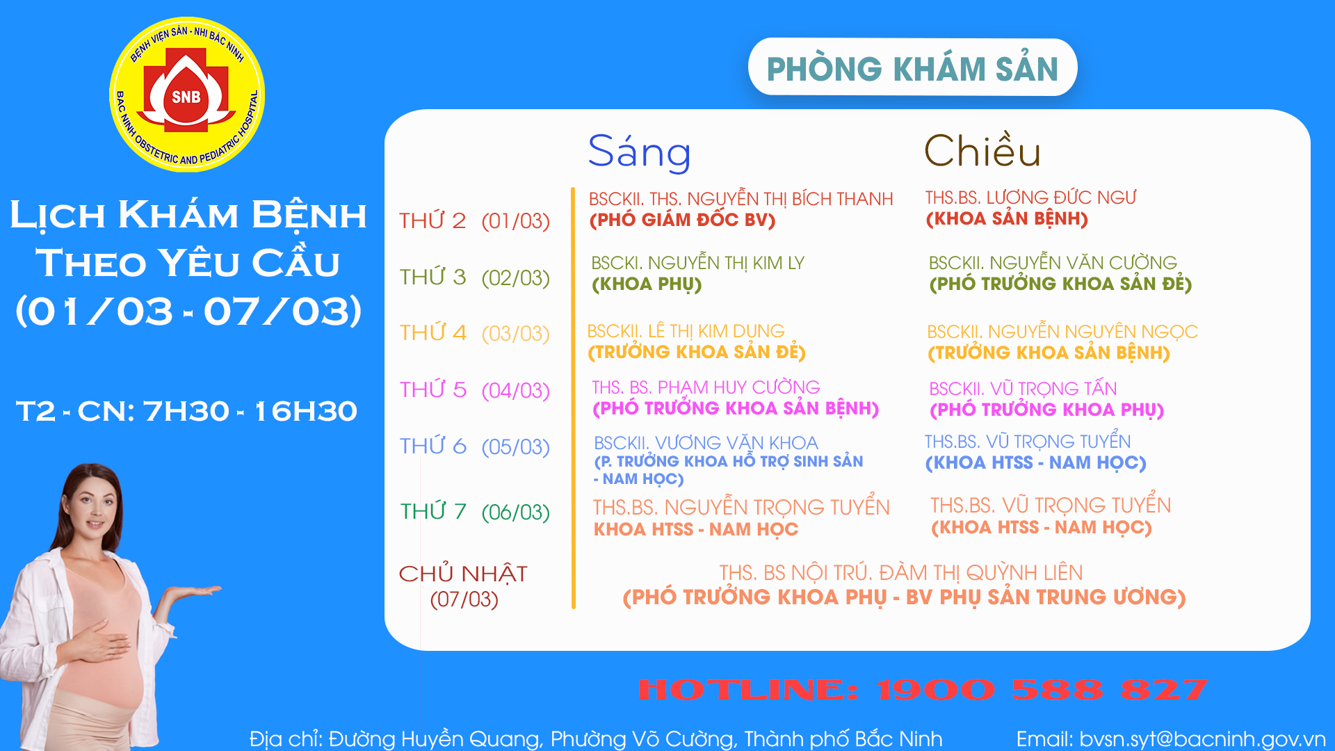 LỊCH KHÁM THEO YÊU CẦU TỪ 01/03/2021 ĐẾN 07/03/2021