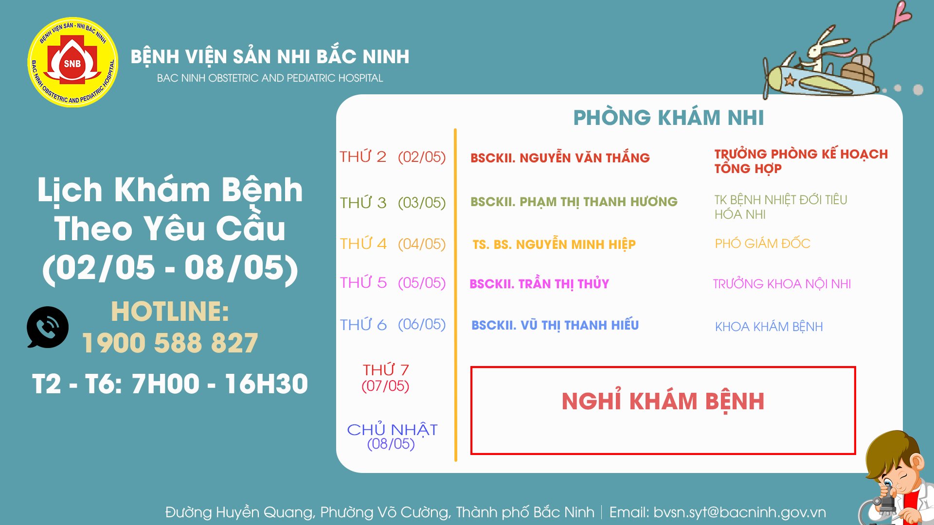 LỊCH KHÁM THEO YÊU CẦU TỪ 02/05/2022 – 08/05/2022