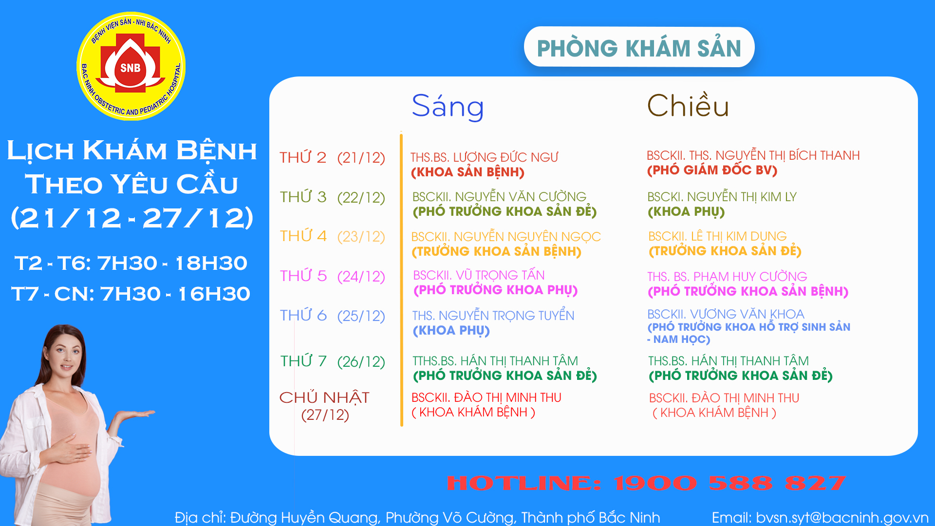 LỊCH KHÁM THEO YÊU CẦU TỪ 21/12/2020 ĐẾN 27/12/2020