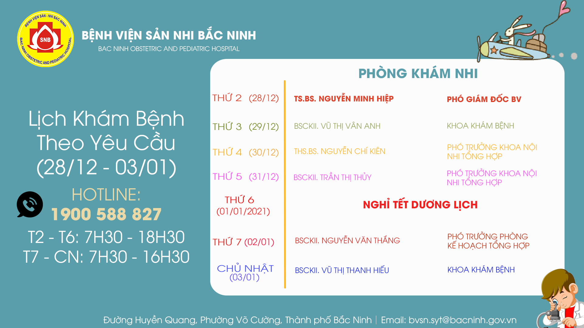 LỊCH KHÁM THEO YÊU CẦU TỪ 28/12/2020 ĐẾN 03/01/2021