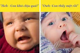 - “Owh” – Con buồn ngủ rồi: Khi cảm thấy mệt mỏi hay buồn ngủ, bé sẽ gập môi lại và phát ra tiếng kêu này rồi sau đó bé sẽ ngáp ngủ.