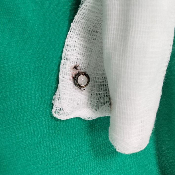 Chỉ trong vòng 5 phút, các bác sĩ đã lấy ra cục pin có đường kính 0.5 cm. Sau ca gắp dị vật, bé tỉnh, tiếp xúc tốt, mũi không còn chảy máu, không đau. Theo dõi 01 ngày tại bệnh viện, tình trạng trẻ ổn định và đã được xuất viện.