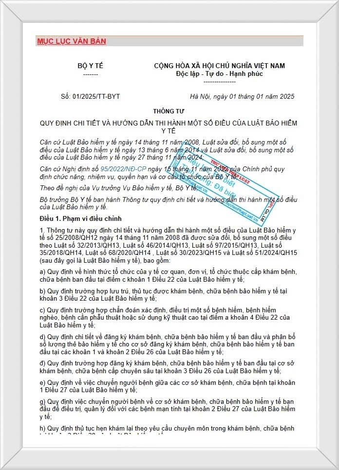 THÔNG TƯ 01/2025/TT-BYT BAN HÀNH NHIỀU QUY ĐỊNH MỚI VỀ KHÁM CHỮA BỆNH BẢO HIỂM Y TẾ