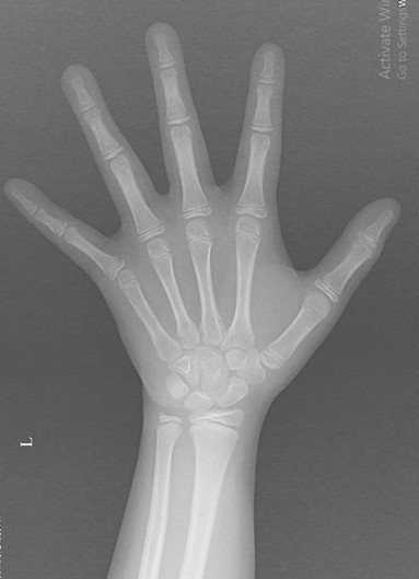 Hình ảnh minh họa Xquang xương bàn tay của bé gái 8 tuổi bị dậy thì sớm chụp tại khoa Chẩn đoán hình ảnh Bệnh viện Sản Nhi tỉnh Bắc Ninh